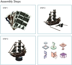 Składanie 3D puzzle od CubicFun to zabawa dla całej rodziny. Model żaglowca Queen Anne's Revenge jest wykonany przy użyciu specjalnego materiału – pianki pokrytej laminowanym zadrukowanym papierem, co gwarantuje trwałość i jakość. Elementy można łatwo wypchnąć z arkusza, więc nie potrzebujesz żadnego kleju ani nożyczek.