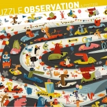 Zwierzątka w wyścigowych bolidach zapewniają mnóstwo zabawy i przygód. Te puzzle z 54 wysokiej jakości elementami są nie tylko zabawne, ale też edukacyjne. Po ułożeniu głównego obrazka o wymiarach 61 x 38 cm dzieci mogą kontynuować zabawę, szukając poszczególnych przedmiotów i postaci przedstawionych w ramce obrazka. Puzzle idealnie rozwijają koncentrację, motorykę małą i umiejętność spostrzegania.