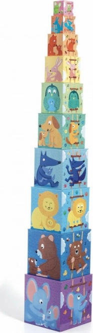 Ulubiona wieża pudełkowa marki DJECO z ilustracjami mam i ich młodych. Dzieci będą się świetnie bawić, budując w górę aż do 89 cm, burząc i wkładając klocki jeden w drugi, dzięki czemu w naturalny sposób uczą się kolorów, kształtów i pierwszych liczb oraz rozwijają motorykę małą. Zestaw zawiera 10 klocków na wiele godzin zabawy.