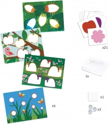 W opakowaniu znajdziesz wszystko, co potrzebne: wycinanki kwiatów i zwierzątek, nadrukowane obrazki, farby, szklane kulki oraz ilustrowaną instrukcję krok po kroku. Proste wykonanie gwarantuje łatwe użycie i czystą zabawę bez skomplikowanych przygotowań.