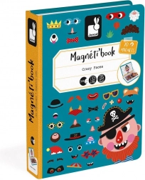 Magnetyczna książka – wspaniała, edukacyjna zabawka! Dzieci układają wesołe obrazki z elementów. Dziecko wybiera różne oczy, okulary, włosy i dodatki, najpierw według wzorów, a potem według własnej wyobraźni. Praktyczne opakowanie sprawia, że zabawkę można wygodnie przenosić. Dzieci bawią się nią nie tylko w domu, ale też w czasie długich podróży. Magnetyczna książka dla dzieci to piękna, ponadczasowa zabawka dla każdego dziecka, która spodoba się kilku pokoleniom, a wykonana jest z wysokiej jakości materiałów i bezpiecznych dla zdrowia farb. Zestaw zawiera 12 kart z wzorami i 70 magnetycznych elementów. Odpowiednia dla dzieci od 3 lat.
