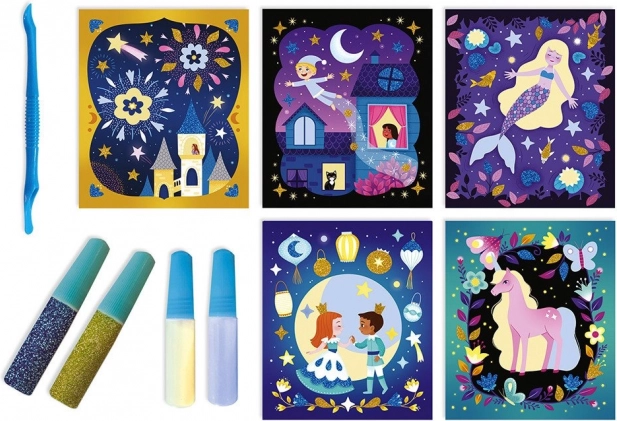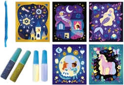 Stwórz świecące obrazki z kolorowego piasku z brokatem! Dzieci za pomocą szpatułki, która jest częścią zestawu, usuwają zaznaczone samoprzylepne powierzchnie. Na te miejsca wysypują błyszczący kolorowy piasek, który świeci w ciemności. Nadmiar piasku można następnie wsypać z powrotem do odpowiedniej tuby. Mała wskazówka na początek – zacznij od piasku na małe powierzchnie i ciemniejsze kolory. Zestaw zawiera: 5 kart z obrazkami, 1 szpatułkę, 4 tuby z błyszczącym kolorowym piaskiem. Odpowiednie dla dzieci od 5 lat. Zestaw Janod Atelier do tworzenia i wspierania umiejętności oraz wyobraźni u dzieci. Kreatywne zabawki dla dzieci nie zajmują dużo miejsca, nadają się w podróż i do domu, w zdrowiu i chorobie, i zapewnią dzieciom zabawę na długie godziny. Tworzenie różnymi technikami wspiera skupienie i koncentrację, naturalną ciekawość oraz zdolności plastyczne.
