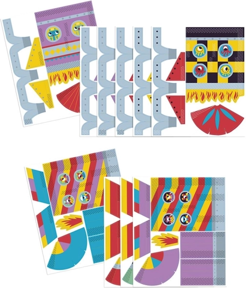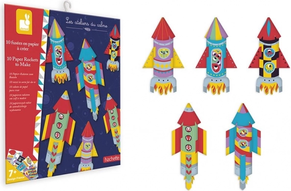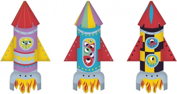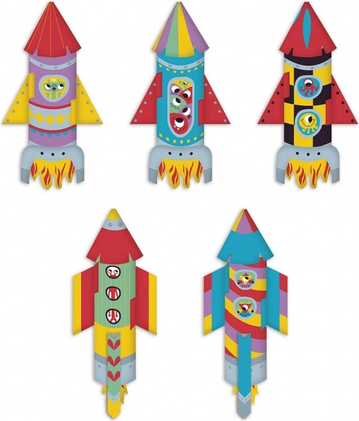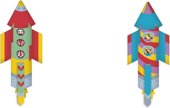 Zestaw zawiera 10 arkuszy do złożenia aż 5 oryginalnych rakiet z barwnymi wzorami, które przyciągają wzrok od pierwszego spojrzenia.