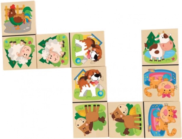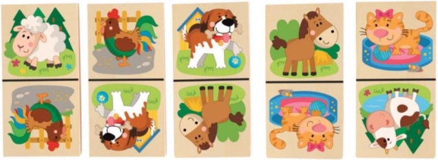 Odkryj tradycyjną zabawę z innowacyjnym akcentem dzięki drewnianemu domino z ilustracjami zwierząt domowych. Świetna gra dla najmłodszych dzieci, która wspiera rozwój poznawczy i percepcję wzrokową.
