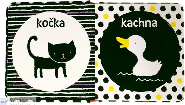 Ta pierwsza czarno-biała książeczka ze zwierzątkami została zaprojektowana tak, aby stymulować percepcję wzrokową noworodków i niemowląt. Wysoki kontrast czarno-białych obrazków z subtelnymi kolorowymi akcentami jest dla wczesnego rozwoju wzroku bardziej odpowiedni niż wielobarwne ilustracje. Maluch może bezpiecznie samodzielnie chwytać książkę i oglądać ją raz po raz.