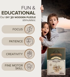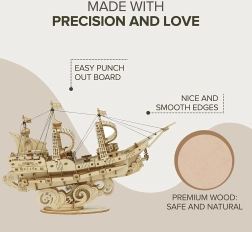 Seria ROBOTIME Rolife oferuje ekscytujące wyzwanie dla wszystkich miłośników puzzli i drewnianych modeli. Stwórz własny 3D żaglowiec, który posłuży nie tylko jako zabawna aktywność, ale i piękna dekoracja po ukończeniu. Koordynuj swoje ręce i umysł, rozwijaj myślenie techniczne i poprawiaj małą motorykę.