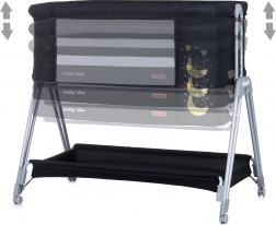 Praktyczne łóżeczko dziecięce 3w1 dla noworodków i niemowląt, które służy jako dostawka, samodzielne oraz turystyczne łóżeczko. Dzięki lekkiej aluminiowej ramie, 5‑stopniowej regulacji wysokości z pozycją antyrefluksową, odpinanej ściance bocznej i kółkom oferuje bezpieczne, wygodne i mobilne rozwiązanie do spania. Przewiewna siatka zapewnia cyrkulację powietrza, miękki materac można prać ręcznie, a dolna przestrzeń do przechowywania ułatwia organizację.