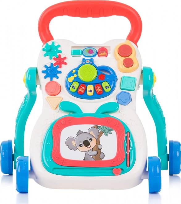 Interaktywny chodzik do pchania to idealny towarzysz dla dzieci, które potrafią już samodzielnie chodzić i chcą odkrywać kolejne umiejętności. Dzięki szerokiemu uchwytowi i stabilnym kółkom pomaga zwiększać pewność podczas chodzenia, a panel zabaw z uroczym motywem koali oferuje mnóstwo atrakcji – od melodii i efektów świetlnych po rysowanie i grę na klawiszach.