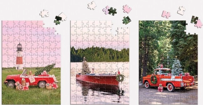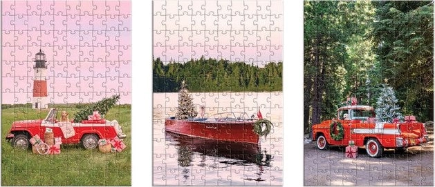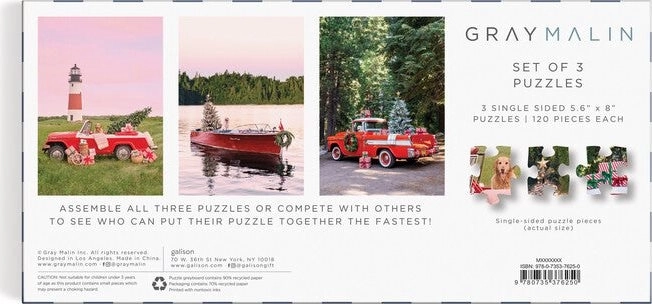Gray Malin The Holiday 3-In-1 Puzzle Set zawiera trzy puzzle 120‑elementowe inspirowane bestsellerowymi ujęciami lotniczymi Gray’a Malina. Idealne dla wszystkich, którzy chcą zanurzyć się w świecie fotografii artystycznej i relaksu.