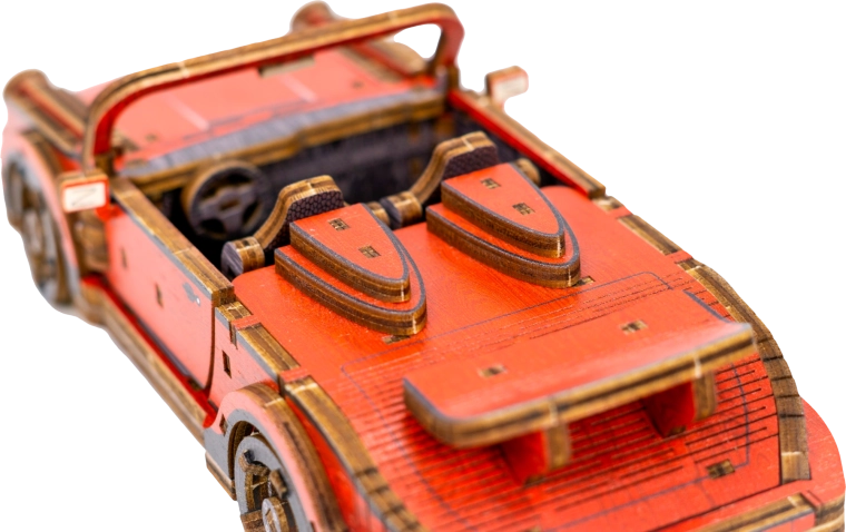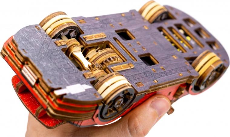 Drewniana mechaniczna układanka najwspanialszego samochodu sportowego czeka na Ciebie! Dzięki unikalnemu designowi i zaskakującym detalom tego modelu spędzisz czas pełen zabawy i świetnych emocji. Możesz sterować przednimi kołami. Auto z mechanizmem bezwładnościowym może przejechać aż 1 metr. Właściwości samochodu sportowego: - silnik napędzany gumowym paskiem, - skrętne przednie koła, - wyraziste kolorowe elementy dzięki wysokoprecyzyjnemu nadrukowi UV, - drewniane pudełko służy jako podstawka, - edycja kolekcjonerska. 3D puzzle WOODEN CITY Sport Car będą najlepszym prezentem dla każdego miłośnika aut sportowych. Trudność: 3 z 5 (wg podziału Wooden City) Szacunkowy czas składania: 3 godziny Skala: 1:22 Drewniane puzzle 3D WOODEN CITY to szczegółowo dopracowane, funkcjonalne mechaniczne modele, które składa się bez użycia kleju lub narzędzi. Wykonane są z ekologicznych materiałów drewnianych – wysokiej jakości brzozowej sklejki. Z mechanicznymi drewnianymi puzzlami WOODEN CITY spędzisz godziny na składaniu i poznasz przekładnie, silniki gumowe, zębatki i inne elementy z bliska. funkcjonalny model mechaniczny składanie bez użycia kleju lub narzędzi wysokiej jakości wykonanie z naturalnego materiału dopracowane detale UWAGA: Do złożenia potrzebny jest nóż łamany, nożyczki, papier ścierny i świeczka z wosku (nie są częścią produktu). Dla prawidłowego działania i bezproblemowej pracy należy nawoskować osie i zębatki. Wymiary złożonej układanki ok. 19,7 x 8,9 x 5,8 cm