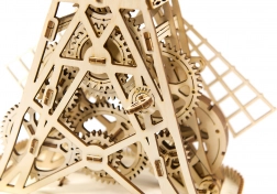 Po nakręceniu łopaty młyna obracają się za pomocą gumowych przekładni, co zapewnia realistyczny ruch.