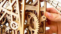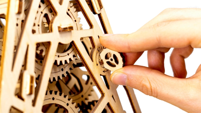 Mimo swojej złożoności montaż jest prosty i niezwykle fascynujący. Dla precyzyjnego i płynnego działania zaleca się woskowanie osi i zębatek. To puzzle jest idealnym prezentem dla miłośników mechaniki i naturalnego piękna.