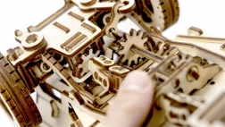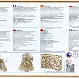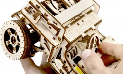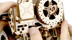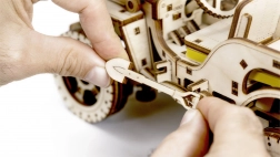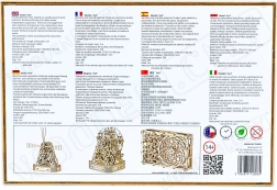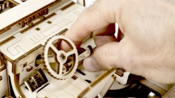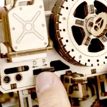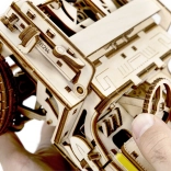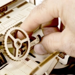 Każda część modelu, który mierzy około 27,9 x 15,1 x 14,8 cm, jest precyzyjnie wycinana laserowo dla dokładnego i płynnego składania. Na koniec przygotuj wosk, aby zapewnić płynną pracę kół zębatych i osi. Do montażu potrzebny jest także nóż segmentowy, nożyczki, papier ścierny i świeczka (wyposażenie nie jest częścią zestawu).