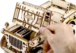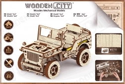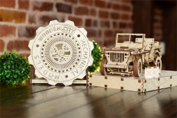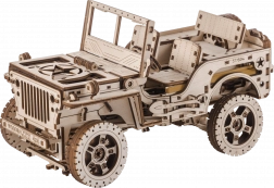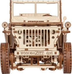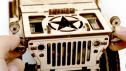 Drewniany model Jeepa 4x4 od WOODEN CITY to wspaniały prezent dla miłośników klasycznych pojazdów i modeli. Wykonany z ekologicznej sklejki brzozowej, model oferuje: