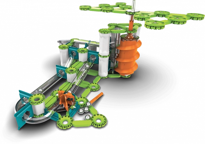 Mechaniczny „silnik” jest napędzany siłą grawitacji, co zapewnia wyjątkowe wrażenia z zabawy. Łatwe łączenie z innymi zestawami rozszerza możliwości o nowe elementy, takie jak magnetyczne katapulty, silniki grawitacyjne i windy. Tak rozbudowany tor wyścigowy przynosi większe wyzwania i ciekawszą zabawę.