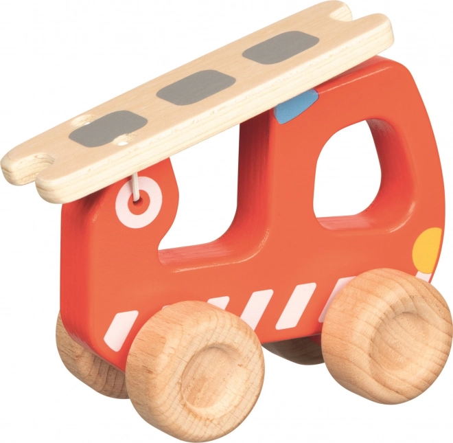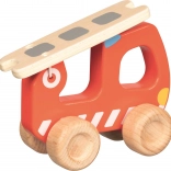 Drewniany samochód strażacki z drabiną oferuje dzieciom zabawną i edukacyjną zabawę. Użyte kolory są nieszkodliwe dla zdrowia, a zabawka jest łatwa do uchwytu.