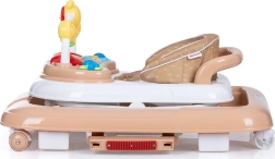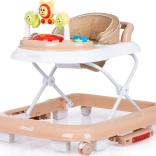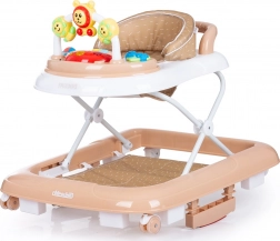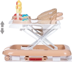 Interaktywny panel z kolorowymi zabawkami i modułem muzycznym wspiera rozwój zmysłów i małej motoryki. Siedzisko można ustawić w 3 poziomach wysokości, przednie kółka obracają się o 360° dla łatwego manewrowania, a cały chodzik łatwo się składa i przechowuje.