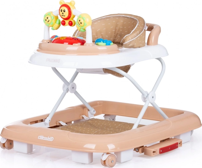 Chodzik 4w1 Friends to praktyczny pomocnik w odkrywaniu świata. Łączy aż cztery funkcje w jednym i łatwo dopasowuje się do aktualnych potrzeb dziecka – od wesołego centrum zabaw po stabilne wsparcie przy pierwszych krokach. Dzięki szerokiej podstawie i elementom bezpieczeństwa ruch jest płynny i bezpieczny.