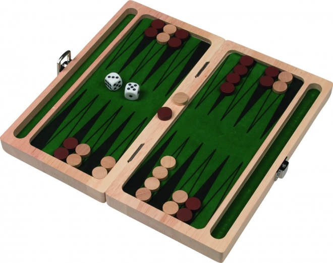 Elegancka plansza z naturalnego drewna składa się w pudełko i ma filcową wyściółkę dla płynnego przesuwu pionków i komfortowej gry.