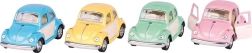 Dzięki kompaktowym wymiarom 10 × 5,5 × 5,5 cm autko to idealny kompan w podróży. Wystarczy kilka razy pociągnąć do tyłu i Garbus rusza do przodu – prosta i lubiana zabawa, która się nie nudzi.