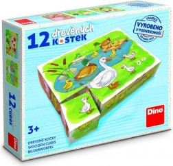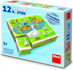 - 12 drewnianych klocków, wzory obrazków