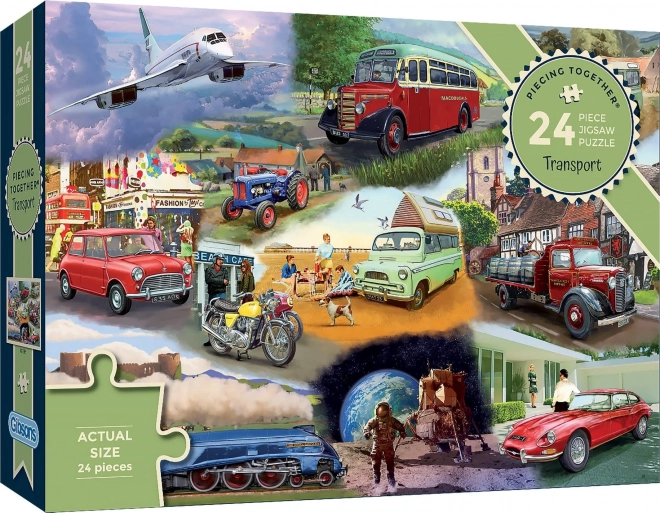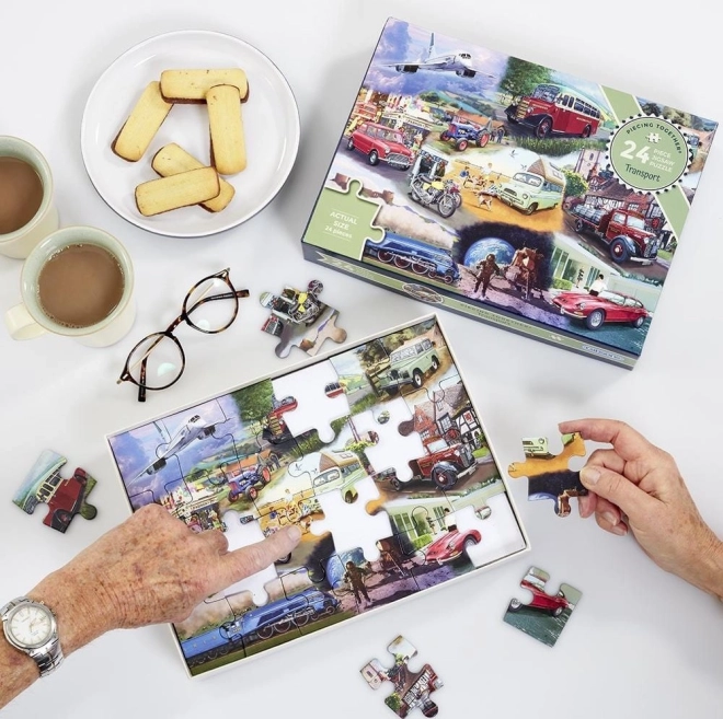 Puzzle GIBSONS z serii Układamy razem zapewniają radość układania dla wszystkich pokoleń. Dzięki mniejszej liczbie elementów, wyrazistym kolorom oraz dołączonemu wzorowi są idealne dla początkujących, seniorów oraz na wspólne chwile z dziećmi. Motyw środków transportu wspiera rozwój percepcji, koncentracji i motoryki małej.