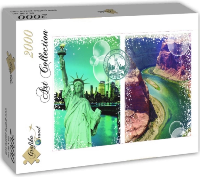 Ciesz się zabawą z tym wymagającym puzzlem składającym się z 2000 elementów, który zabierze Cię w przygodową podróż po Stanach Zjednoczonych Ameryki.