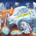Odkryj zabawę dla małych odkrywców z dziecięcymi puzzlami RAVENSBURGER. Opakowanie zawiera dwa oddzielne zestawy po 24 elementy, każdy o wymiarach około 26 × 18 cm. Wysoka jakość wykonania i motyw podróży przez kosmos wspierają koncentrację, motorykę i radość z układania.
