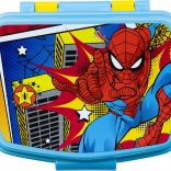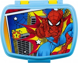 To pudełko na śniadanie przyciąga uwagę dzięki kolorowemu, komiksowemu wyglądowi z motywem Spidermana, co czyni je ulubionym elementem szkolnej wyprawki.
