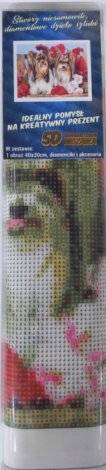 Malowanie diamentowe to świetna aktywność kreatywna, która pomaga odprężyć umysł, a jednocześnie stworzyć wyjątkową dekorację do mieszkania. Motyw piesków w różach ucieszy miłośników zwierząt i pięknych detali. Dzięki przejrzystej legendzie i aplikatorowi łatwo przykleisz kolorowe kamyczki na zadrukowane płótno.