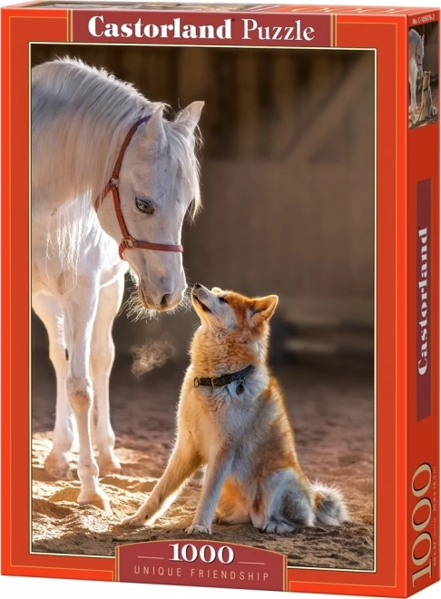 Odkryj radość układania z puzzlami o 1000 elementach, które przedstawiają wzruszającą scenę konia i psa. Wysoka jakość wykonania oraz precyzyjne wycięcia zapewniają płynne układanie, a bogate kolory i szczegółowa ilustracja zachwycą każdego miłośnika puzzli i zwierząt.