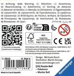 Ravensburger 3D Puzzle Pokémon Master Ball to fascynujące doświadczenie dla małych i dużych fanów Pokémonów. Dzięki świetnemu wzornictwu, typowemu dla świata Pokémonów, ta układanka składająca się z 54 elementów zapewnia zabawę i rozwija wyobraźnię dzieci od 6. roku życia.
