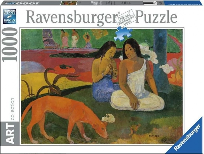 Premium puzzle Ravensburger z kolekcji Art Collection z motywem Arearea (Czerwony pies) oferują 1000 elementów, wymiary 70 × 50 cm, precyzyjne wycięcia oraz wysokiej jakości, wytrzymały karton dla płynnego układania bez odblasków.