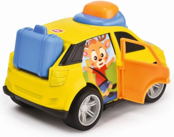 Ten jasnożółty taksówkowy samochodzik z uśmiechem i ruchomymi kołami jest idealny do szybkich przejażdżek po pokoju dziecięcym. Oferuje funkcję '100% Electric', co gwarantuje radosną i bezpieczną zabawę.