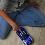 Samochód na napęd cierny, funkcje świetlne i dźwiękowe. Długość 20 cm.