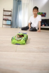 Ten samochód jest wyposażony w mocny napęd cierny, który umożliwia szybkie i dynamiczne wyścigi.