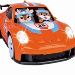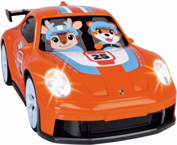 Stylowe dziecięce auto zdalnie sterowane inspirowane ikoną PORSCHE 911 GT3 zachwyci najmłodszych kierowców prostym sterowaniem. Jazda do przodu jest na wprost, podczas cofania auto automatycznie skręca, przednie światła świecą, a maksymalna prędkość wynosi do 4 km/h. Kompaktowa długość 27 cm idealnie pasuje do dziecięcych rąk.