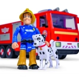 Wóz strażacki Jupiter Pro z figurką Sama i pieska. 2 różne efekty dźwiękowe, migające światło, wysuwana i obrotowa drabina. Długość 31 cm