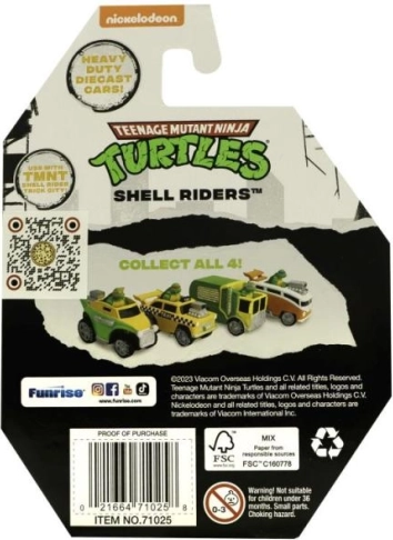 W każdym autku znajduje się postać jednego z Żółwi Ninja, co przenosi emocje z popularnego serialu telewizyjnego do zabawy.