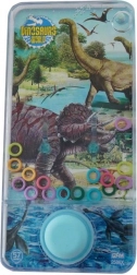 Zabawna kieszonkowa wodna gra z motywem dinozaurów QUIZY ucieszy każde dziecko. Wystarczy nacisnąć przyciski, a strumień wody rozkręci kółeczka – celem jest umieszczenie ich na kołeczkach. Gra wspiera zręczność, koncentrację i cierpliwość, idealna w podróży i w poczekalni.