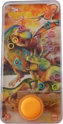 Odkryj urok prostej klasyki: wodna gra z dinozaurami QUIZY bawi dzieci bez ekranów i baterii. Naciskając przyciski, tworzysz strumień wody, który porusza kółeczka – zadaniem jest precyzyjnie skierować je na kołeczki. Świetny wybór dla rozwoju małej motoryki i koordynacji oko–ręka.