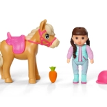 Laleczka Kim jest gotowa wskoczyć w siodło – z uroczym różowym kaskiem, siodłem i uzdą. Marchewka pomoże wywabić konika ze stajni i rozpocznie zabawne historie pełne fantazji.