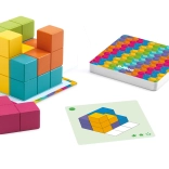 Szukasz mądrej i pięknie wykonanej zabawki, która bawi, a jednocześnie rozwija logikę? DJeco Cubissimo łączy drewniane wykonanie, żywe kolory i przemyślane zadania – od łatwiejszych po wymagające. Ustaw pozycję startową zgodnie z kartą zadań, a następnie przy pomocy pozostałych elementów dobuduj kostkę do wymaganego kształtu. Każde rozwiązanie ćwiczy myślenie przestrzenne, logiczne rozumowanie i małą motorykę.