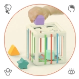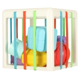 Ta elastyczna kostka została zaprojektowana, aby pomóc w rozwijaniu różnorodnych umiejętności dzieci. Oprócz tradycyjnego wkładania i wyciągania bloków kształtów z kostki, oferujemy innowacyjny design z gumowymi paskami, które dodają nowe elementy trudności i zabawy.