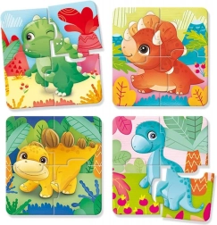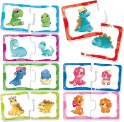 Każda układanka w zestawie zawiera kolorowe dinozaury, które przyciągają dzieci i wspierają je w nauce nowych rzeczy poprzez zabawę.