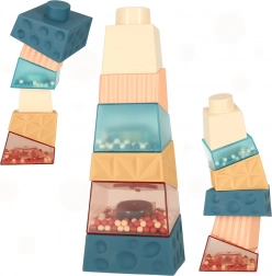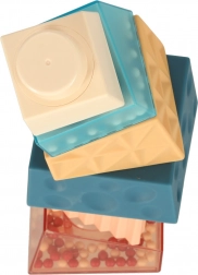 Dzięki dużym rozmiarom poszczególnych klocków, zabawka jest bezpieczna dla dzieci od 18 miesiąca życia. Z jej barwnymi kolorami i różnorodnymi teksturami świetnie nadaje się także jako ozdoba pokoju dziecięcego.