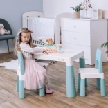 Plastowy stolik z krzesełkami Neo oferuje wytrzymały materiał i nowoczesny wygląd, który wpasuje się w każde dziecięce wnętrze. Wyposażony jest w dwie praktyczne szufladki o wymiarach 23 x 14 cm, w których dzieci mogą przechowywać drobiazgi.