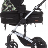 Lekka, a zarazem solidna konstrukcja z wbudowaną amortyzacją niweluje nierówności, a wraz z dużymi kołami i niezawodnym hamulcem gwarantuje pewną i płynną jazdę. Praktyczna duża budka z okienkiem chroni przed słońcem, a bogaty zestaw akcesoriów pokrywa większość codziennych potrzeb.