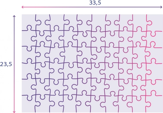 Ułożone puzzle mają wymiary 33,5 x 23,5 cm, co jest idealne do dziecięcej zabawy lub jako dekoracja.