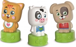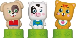 Trzy figurki – kot, krówka i piesek – motywują dzieci do kreatywnej zabawy, rozwijają wyobraźnię i wspierają pierwsze logiczne skojarzenia.